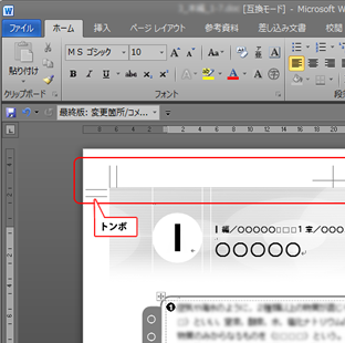| トンボって入りますか? | Word®のヘッター・フッター機能を使ってトンボを入れることができます。