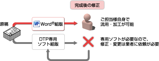 Word®で組版するメリットは、お持ちのWord®でデータ流用・加工が可能になります。