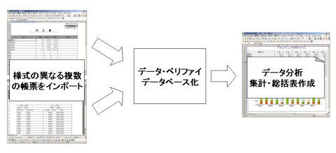 大量のデータ・エントリからデータ・ベリファイ、データベース化を行います。さらには専用プログラムを介し、正確に一括で集計及びデータの分析を行うことが可能です。